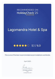 The Lagomandra Hotel & Spa welcomes you to the beautiful Sithonia of Chalkidiki, the area of Lagomandra 6km before Neos Marmaras and approximately 200 metres from the awarded with a blue flag beach, to offer you a comfortable and luxurious stay in the most picturesque prefecture of Macedonia, providing you with a hundred and twenty (120) rooms for your better service. Our renovated rooms are classified into Deluxe Double, Deluxe Family, Suites, Junior Suites and sea view Maisonettes, to choose the one better suited for you.