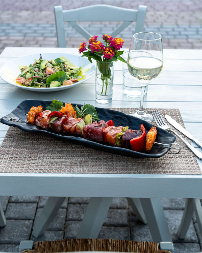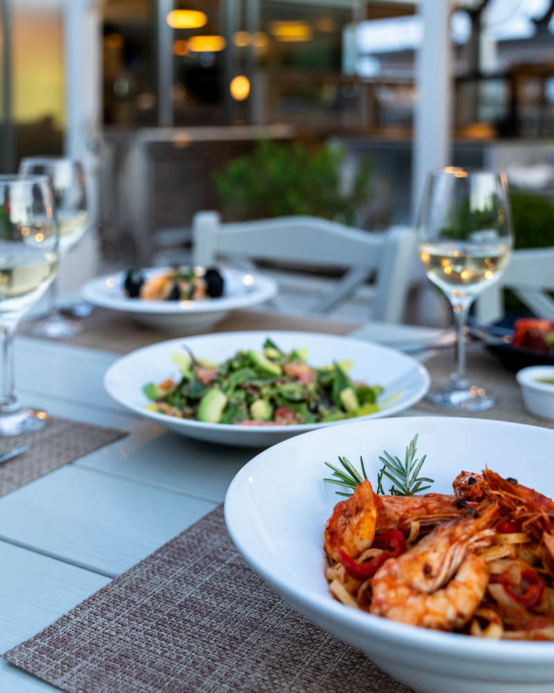 Het restaurant "Elia" serveert dagelijks ontbijt en diner in buffetstijl van ervaren chefs die unieke gerechten uit Griekenland en de rest van Europa creëren. De exquisiet mooie setting in combinatie met het hoogwaardige eten maakt uw diner tot een echt genoegen. De "Korali Pool Bar" van het Lagomandra Hotel en Spa, bij het centrale zwembad, biedt u verkoelende cocktails, drankjes, koffie, sappen en koude snacks gedurende de dag en gratis ligbedden voor onze hotelgasten.